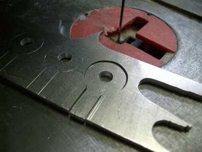 der Dekupiersäge gefertigte Aufnahmen mit Schrauben als Steckachse
