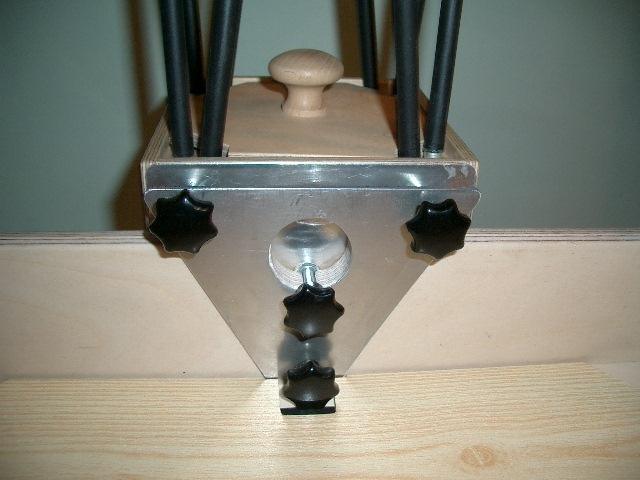 The geometry of the cell was optimized with the program PLOPP from David Lewis. I m using pieces of screw threats with 8mm (0,3 ) diameter as collimation bolts, for screwing I fixed stopcock-wheels at the ends, these are lightweight (aluminum), flat and cheap. On the other side they emphasize the individual telescope. The triangles are made of 3mm (0,12) aluminum.